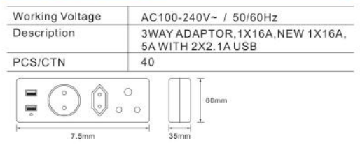 Redisson 3 Way Adopter 1x16A-New 1x16A-5A With 2x2.1A USB